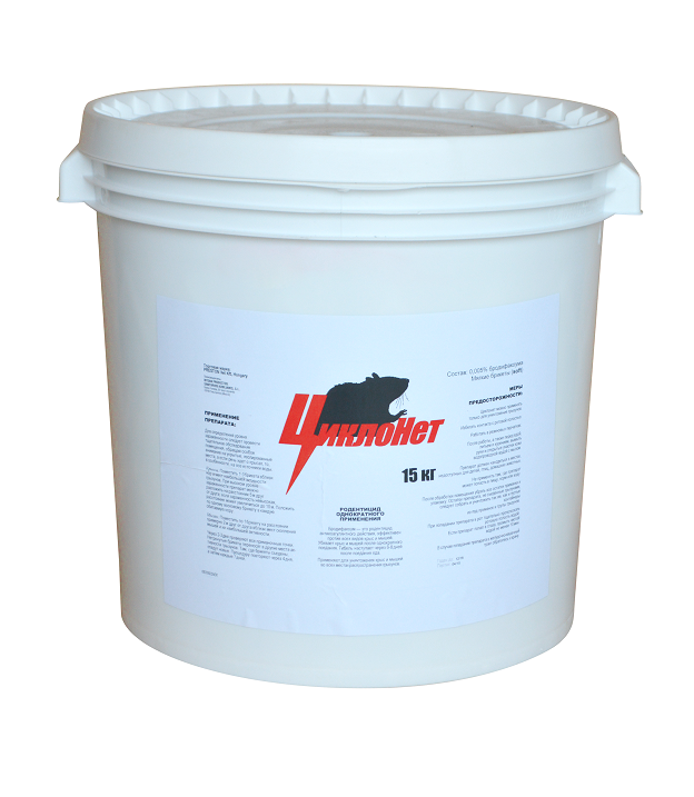 Родентицидное средство «Циклонет мягкий брикет» - готовая к применению приманка голубого цвета, в состав которого входит действующее вещество - бродифакум 0,005 %, растительная мука,жиры, сахарная пудра, краситель, ароматизатор, горечь, консервант. Средство упаковано по 8 - 10 г. в индивидуальную бумажную упаковку. Срок годности «Циклонет мягкий брикет»-брикеты эффективны в отношении крыс и мышей. Смертельную дозу грызуны получают в течение 4-14 дней. Клиника отравления типична для антикоагулянтов: понижение свертываемости крови, приводящие к кровотечениям, а затем - к гибели грызунов. «Циклонет мягкий брикет» используется для уничтожения серых и черных крыс и домовых мышей в застроенных и не застроенных территориях населенных пунктов, включая жилые помещения, пищевые, детские и лечебные объекты (в недоступных для детей местах), а также на садово-огородных участках. Средство пригодно для применения в сухих и влажных помещениях, канализационной сети, подвалах, погребах и подземных сооружениях.