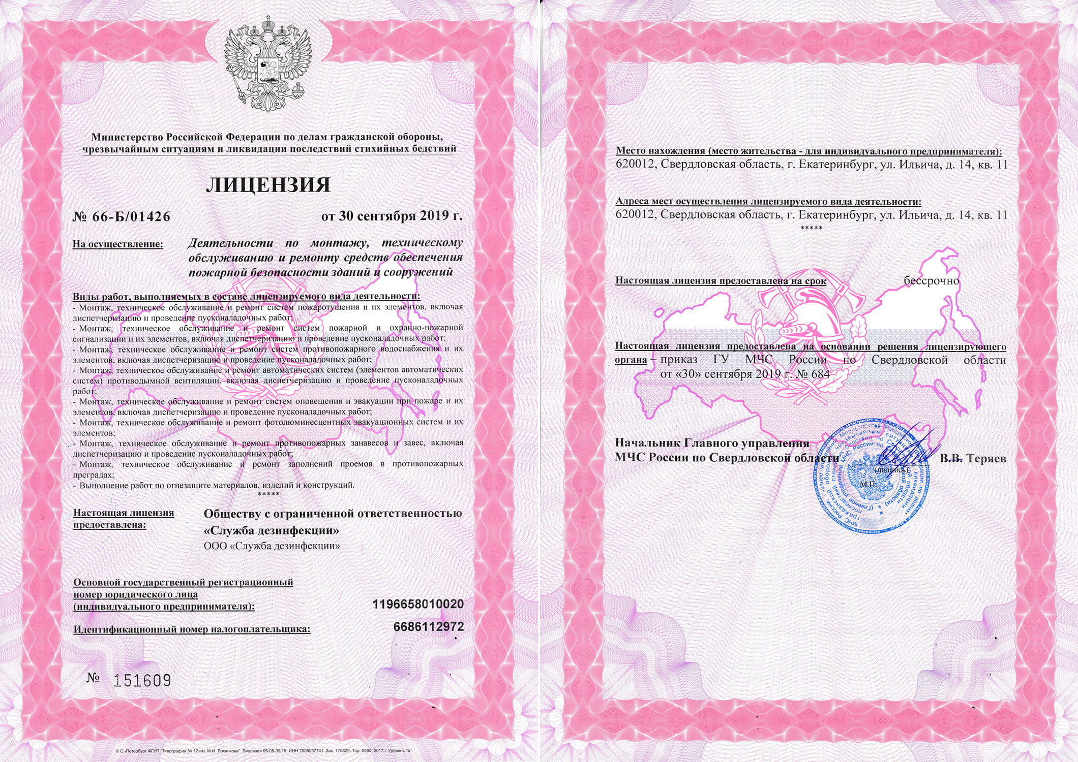 Лицензия позволяет компании оказывать услуги дезинфекции по всей России.